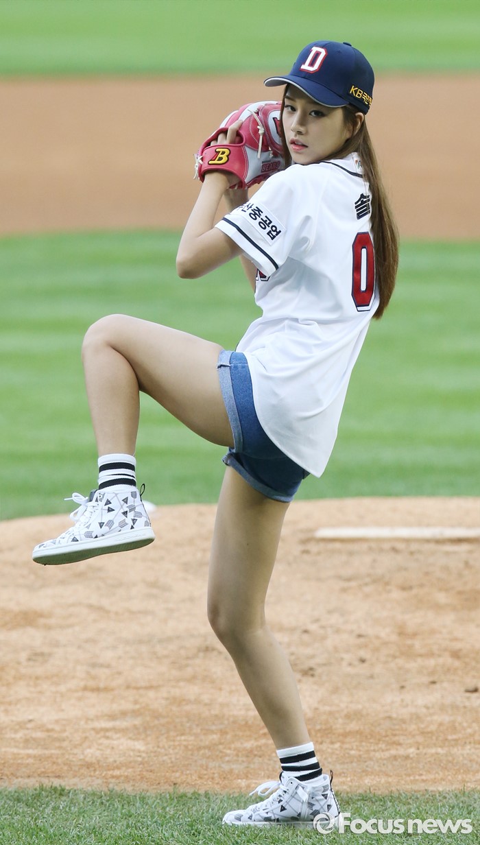 (서울=포커스뉴스) 30일 서울 잠실구장에서 열린 2016 프로야구 NC-두산 경기에 앞서 걸그룹 '라붐'의 솔빈이 시구하고 있다.
