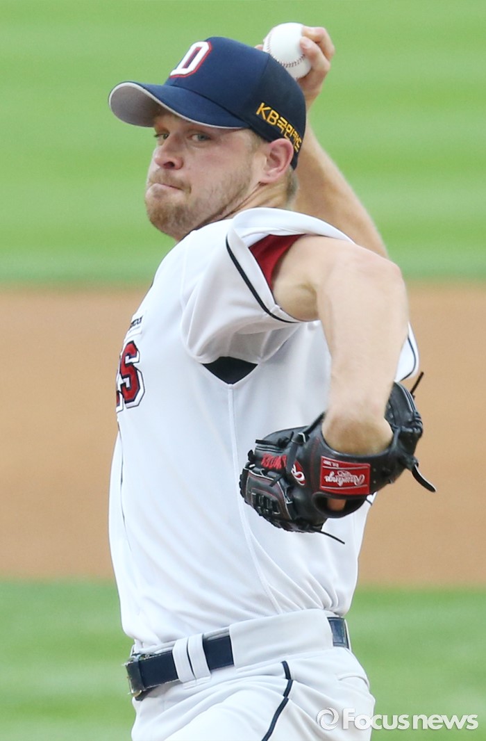 (서울=포커스뉴스) 30일 서울 잠실구장에서 열린 2016 프로야구 NC-두산 경기에서 1회초 두산 선발투수 보우덴이 투구하고 있다.