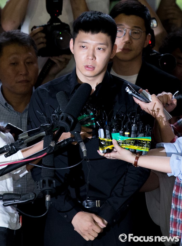 (서울=포커스뉴스) 성폭행 혐의로 4명의 여성에게 연이어 피소된 가수 겸 배우 박유천이 30일 오후 서울 강남경찰서로 출석하고 있다.