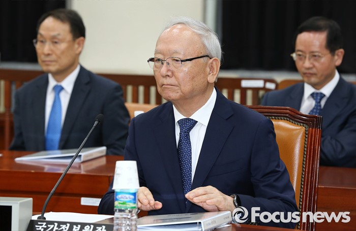 (서울=포커스뉴스) 1일 오전 서울 여의도 국회에서 열린 정보위원회 전체회의에 이병호 국정원장과 차장들이 자리하고 있다.