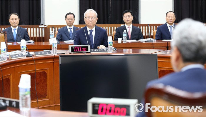 (서울=포커스뉴스) 1일 오전 서울 여의도 국회에서 열린 정보위원회 전체회의에 이병호 국정원장과 차장들이 자리하고 있다.