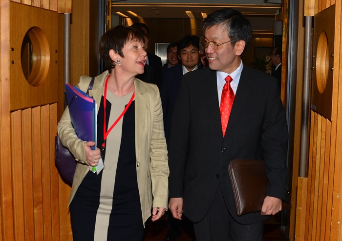 (서울=포커스뉴스) 한국의 파리클럽 정회원 가입 서명식 참석 차 프랑스 파리를 방문중인 최상목 기획재정부 차관이 1일(현지시각) 프랑스 재무부에서 열린 파리클럽 60주년 기념행사에 참석해, 오딜 르노 바소 파리클럽 의장과 대화를 하고 있다. <사진제공=기획재정부>