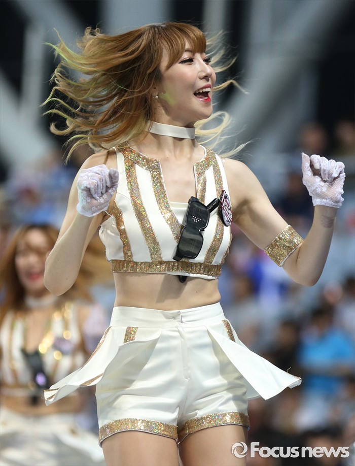 (서울=포커스뉴스) 장맛비가 본격적으로 내린 1일 유일하게 KIA-넥센 경기가 열린 서울 고척 스카이돔에서 넥센 치어리더가 클럽 분위기를 물씬 풍기며 활기찬 안무로 관중석의 열기를 북돋우고 있다.