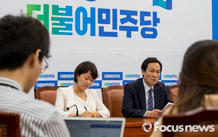 (서울=포커스뉴스) 우상호 더불어민주당 원내대표가 취임 2개월을 맞아 3일 오전 서울 여의도 국회에서 가진 기자간담회에 참석해 인사말을 하고 있다.