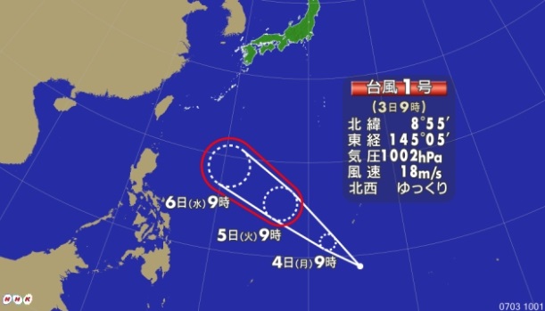일본 NHK는 3일 오전 9시 일본 남쪽 캐롤라인 제도에서 태풍 1호 '네파탁'이 발생했다고 보도했다. 태풍 '네파탁'은 소형급의 태풍으로 분류된다. 하지만 서서히 북상하면서 중형급의 강한 태풍으로 발달할 가능성이 있는 것으로 알려졌다.