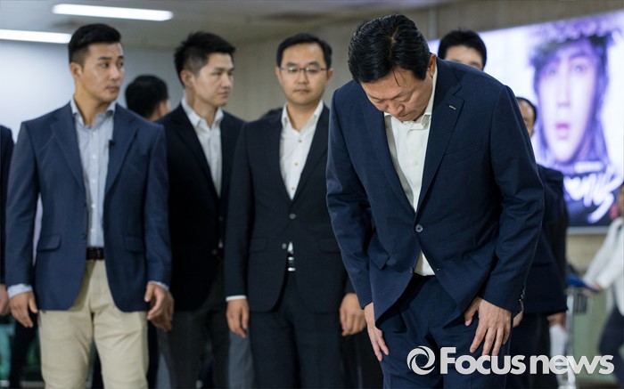 | △ 고개 숙인 신동빈 회장 |