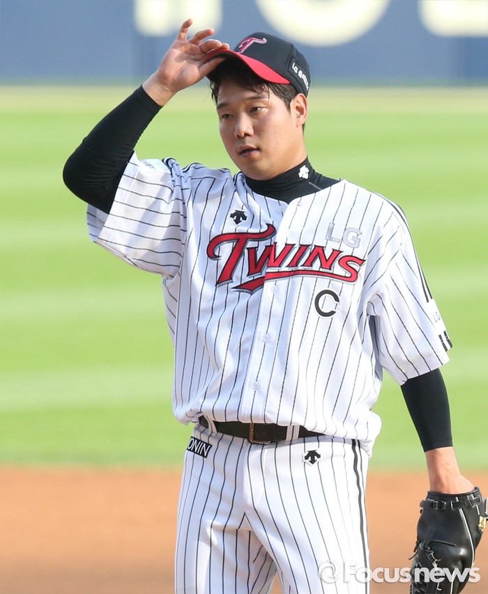 (서울=포커스뉴스) 3일 서울 잠실구장에서 열린 2016 프로야구 SK-LG 경기에서 1회초 LG 선발투수 류제국이 SK 선두타자 고메즈에게 안타를 맞고 모자를 고쳐쓰고 있다.
