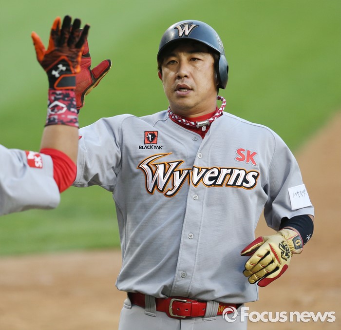 | △ 득점하는 SK 김강민 |