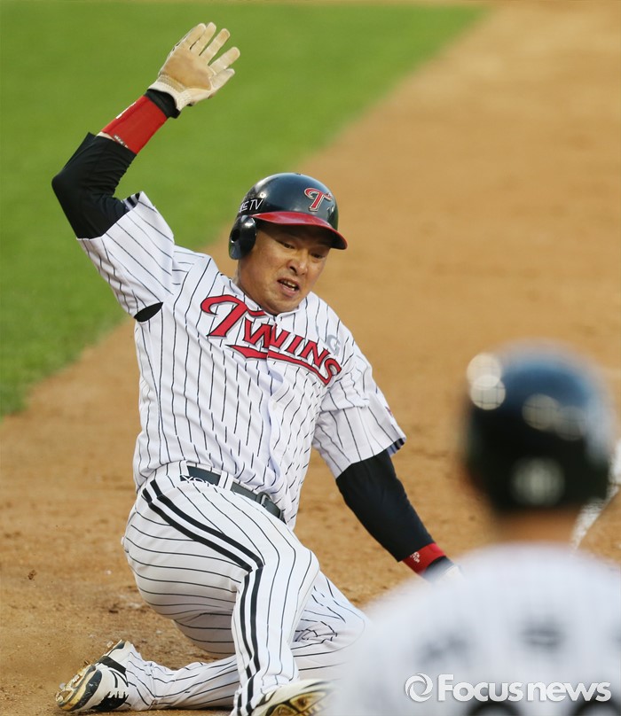 (서울=포커스뉴스) 3일 서울 잠실구장에서 열린 2016 프로야구 SK-LG 경기4회말 2사 1루에서 LG 1루주자 임훈이 오지환의 3루타때 홈까지 뛰어 세이프되고 있다.