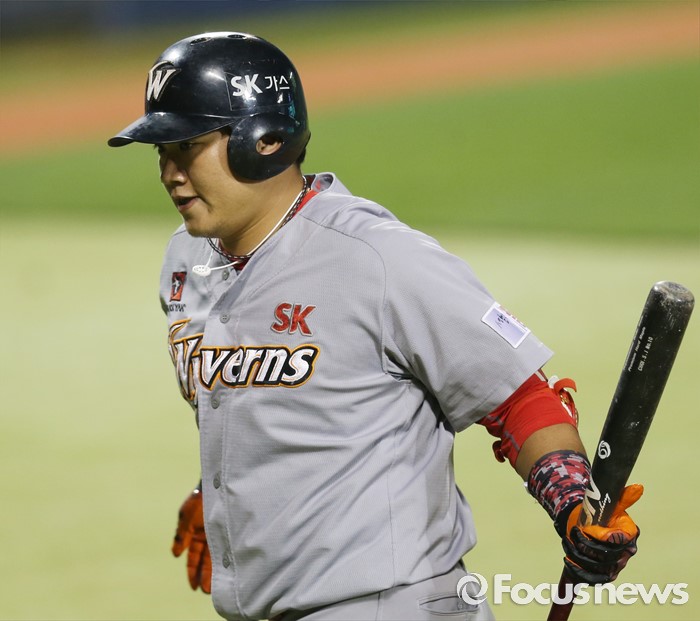 (서울=포커스뉴스) 3일 서울 잠실구장에서 열린 2016 프로야구 SK-LG 경기 8회초 1사 1루에서 SK 최승준이 우중월 2점 홈런을 치고 홈인하고 있다.