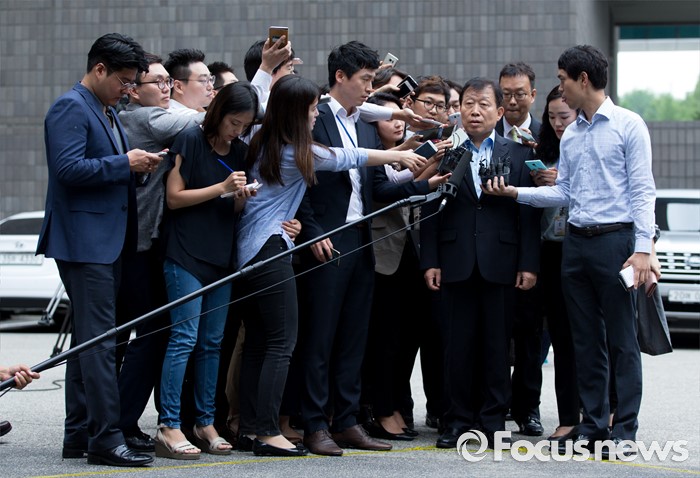 (서울=포커스뉴스) 5조 4천억 원대 회계사기로 대우조선해양 비리 의혹 핵심 인물로 지목된 고재호 전 사장이 4일 오전 서울중앙지방검찰청 부패범죄 특별수사단으로 출석하고 있다.