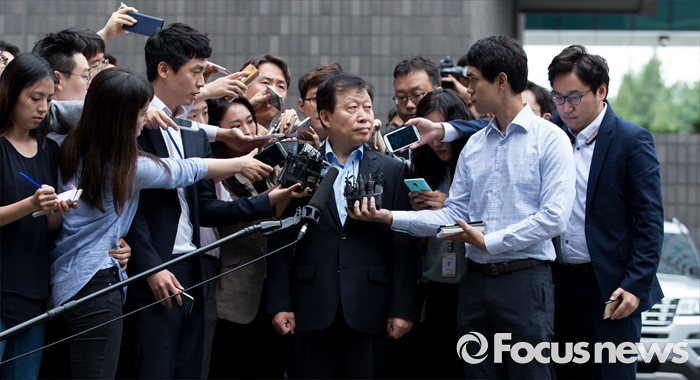 (서울=포커스뉴스) 5조 4천억 원대 회계사기로 대우조선해양 비리 의혹 핵심 인물로 지목된 고재호 전 사장이 4일 오전 서울중앙지방검찰청 부패범죄 특별수사단으로 출석하고 있다.
