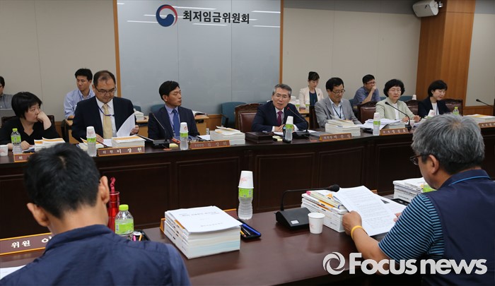 (세종=포커스뉴스) 4일 오후 세종시 정부세종청사 고용노동부 최저임금위원회 전원회의실에서 열린 제8차 전원회의에서 박준성 위원장이 회의를 주재하고 있다.