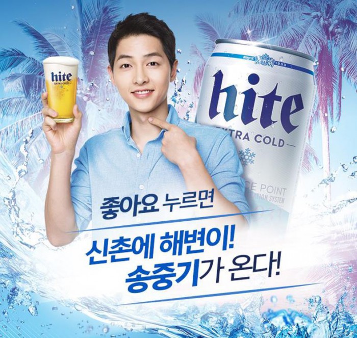 4일 하이트진로에 따르면, 지난 1일 공식 페이스북 이벤트 게시물에 '좋아요' 1만개를 달성하면 서울 마포 신촌에 해변을 만들고 하이트 맥주 모델인 배우 송중기를 초대하겠다는 대형 공약을 발표했다.