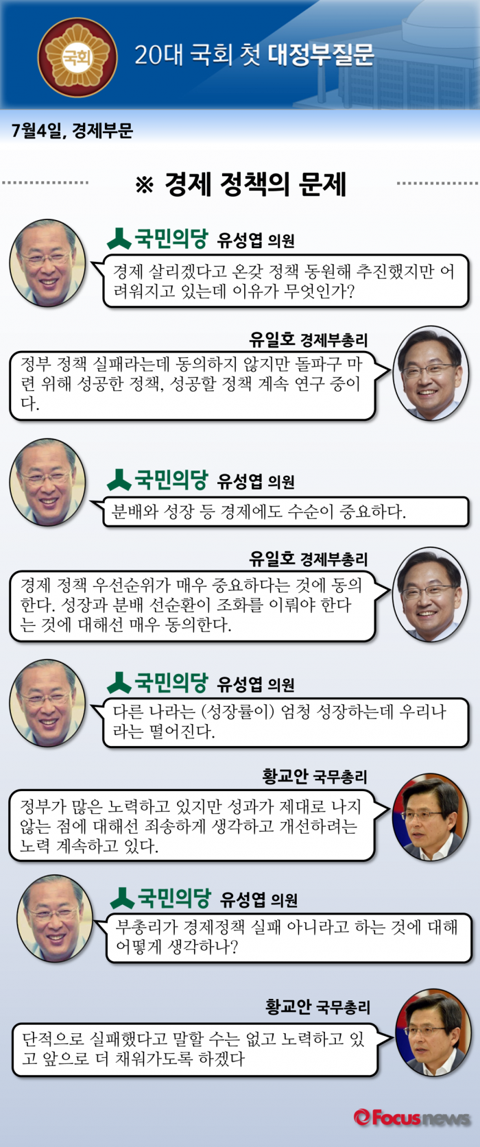 (서울=포커스뉴스) 4일 오전 10시부터 국회에서 20대 국회 첫 대정부질문이 시작됐다. 이틀에 걸쳐 4일에는 경제부문을, 5일에는 비경제부문을 다루게 된다.