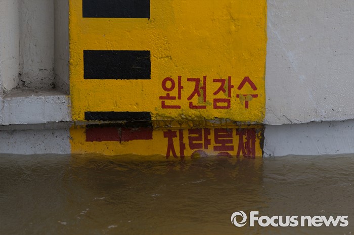 (서울=포커스뉴스) 장마전선이 북상하면서 전국 곳곳에 호우특보가 발표 중인 5일 오전 서울 서초구 잠수교가 통제되고 있다.