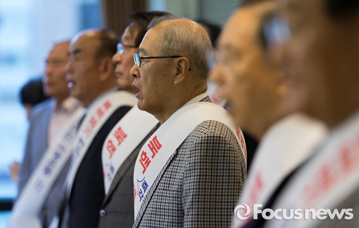 (서울=포커스뉴스) 북핵폐기천만인서명운동본부 등 시민단체 관계자들이 5일 오전 서울 중구 프레스센터에서 열린 북핵폐기 천만인서명, 250만명 돌파 기자회견에 참석해 애국가를 제창하고 있다.