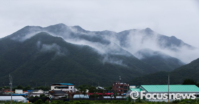 (연천=포커스뉴스) 태풍 네파탁이 북상하고 전국 곳곳에 호우주의보와 경보가 내린 5일 오전 경기도 연천군 상리 인근의 산 허리에 비를 동반한 안개가 짙게 깔려 있다.