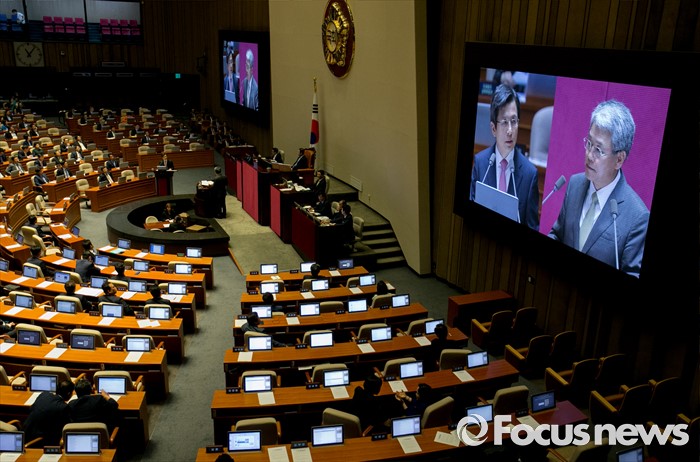 (서울=포커스뉴스) 5일 오전 서울 여의도 국회에서 열린 343회 국회(임시회) 7차 본회의, 정치·외교·통일·안보·교육·사회·문화에 관한 질문에 참석한 김동철 국민의당 의원이 황교안 국무총리에게 질문하고 있다.