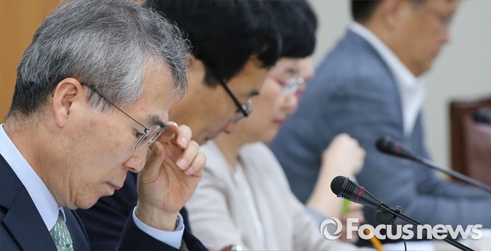 (세종=포커스뉴스) 5일 세종시 정부세종청사 고용노동부 최저임금위원회에서 열린 제9차 전원회에서 박준성 위원장이 회의자료를 살피고 있다.