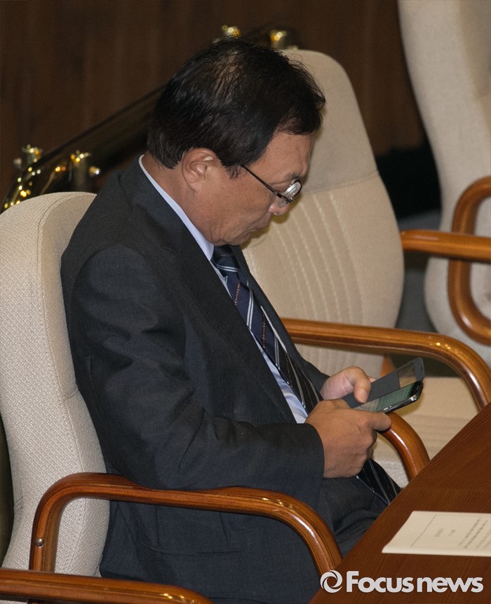 (서울=포커스뉴스) 5일 오후 서울 여의도 국회에서 열린 343회 국회(임시회) 7차 본회의, 정치·외교·통일·안보·교육·사회·문화에 관한 질문에 참석한 이해찬 무소속 의원이 핸드폰을 살펴보고 있다.