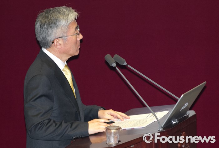 (서울=포커스뉴스) 5일 오후 서울 여의도 국회에서 열린 343회 국회(임시회) 7차 본회의, 정치·외교·통일·안보·교육·사회·문화에 관한 질문에 참석한 김종덕 문화체육관광부 장관이 이채익 새누리당 의원의 질문에 답하고 있다.