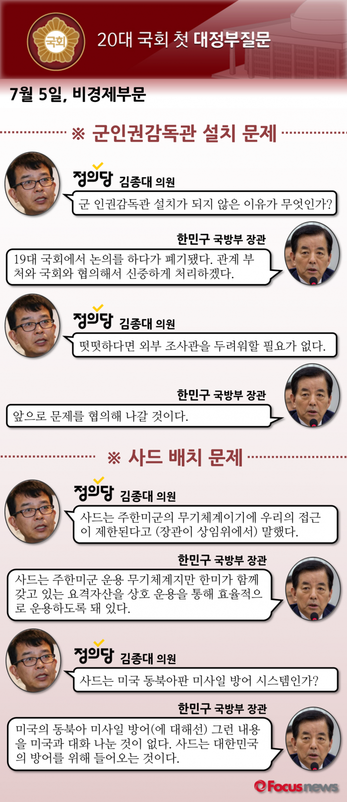 다음은 정의당 김종대 의원과 한민구 국방부 장관의 질의응답 내용이다.