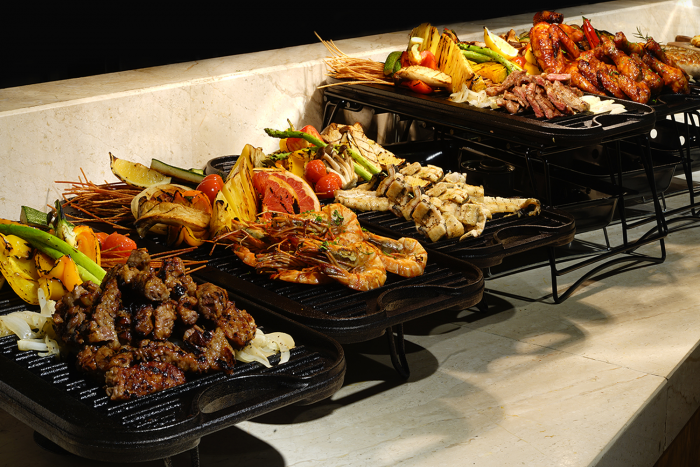 또한 즉석에서 선보이는 '그릴 라이브 스테이션', 모듬회, 모듬초밥, 일본식 에피타이저를 즐길 수 있는 해산물 라이브 스테이션와 헬씨 디저트와 아이스크림 섹션 등 세계 요리의 향연이 펼쳐진다.