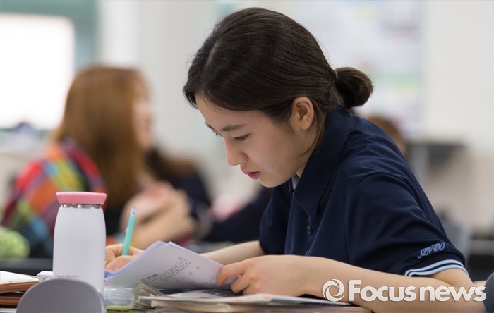 (서울=포커스뉴스) 6일 오전 서울 은평구 신도고등학교에서 한 3학년 학생이 2016학년도 7월 전국연합학력평가를 준비하고 있다.