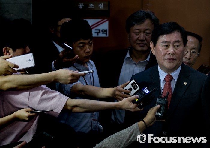 취재진 질문 답하는 최경환