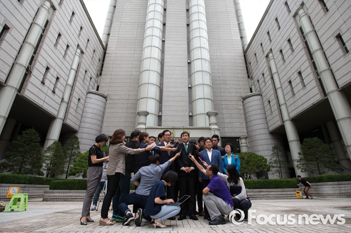 (서울=포커스뉴스) 2012년 대선을 앞두고 발생한 '국정원 여직원 감금 사건' 재판 선고가 내려진 6일 오전 서울 서초구 서울중앙지법 앞에서 이종걸 더불어민주당 의원이 재판 선고 후 법원 앞에서 취재진과 인터뷰를 하고 있다.