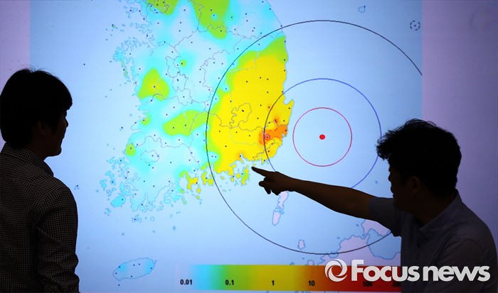 (대전=포커스뉴스) 6일 오전 대전 유성구 한국지질자원연구원 지진연구센터에서 직원들이 지진상황을 모니터 하고 있다. 지난 5일 오후 8시 33분께 울산 동구 동쪽 52㎞ 해상에서 규모 5.0의 지진이 발생했다.