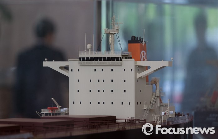 재무구조 개선에 한창인 한진해운은 운항 원가 절감을 위해 전략적 노선 재편·노선 합리화 등 구조조정을 추진하고 있다. 7월부터 시작된 성수기를 맞아 영업 흑자 실현을 위해 총력을 기울일 방침이다.(서울=포커스뉴스) 한진해운 1층 로비 있는 선박 모형.2016.04.25 김인철 기자