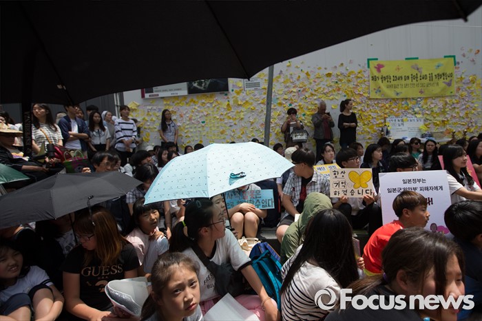 | △ 무더위 속, 수요집회에 참석한 학생들 |