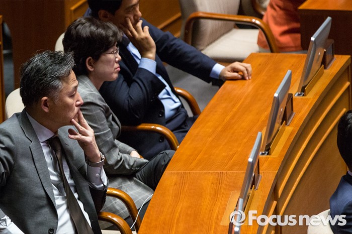 (서울=포커스뉴스) 표창원(왼쪽) 더불어민주당 의원이 6일 오후 서울 여의도 국회에서 열린 '제343회 국회(임시회) 제8차 본회의'에 참석하고 있다.