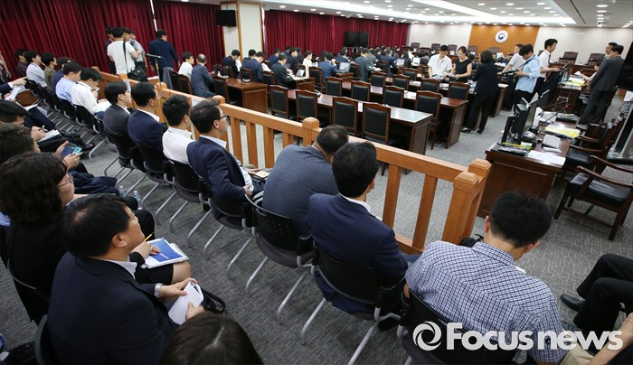 (세종=포커스뉴스) 지난달 22일 세종시 정부세종청사 공정거래위원회 심판정에서 열린 6개 시중은행(국민·농협·신한·우리·하나·SC은행)의 양도성예금증서(CD)금리 담합의혹에 대한 심의에 앞서은행관계자들이 배석해 있다. 6일 공정위 전원회의는 CD금리 담합과 관련해 법 위반 여부를 결정하기 어렵다고 판단, 심의절차를 종료 한다고 밝혔다.
