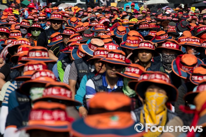 (서울=포커스뉴스) 6일 오후 서울 중구 서울시청광장에서 전국에서 모인 건설노조원들이 '건설노동자 총력투쟁 결의대회'에 참가하고 있다.