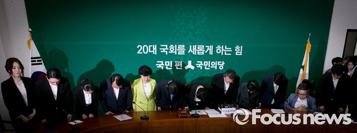 (서울=포커스뉴스) 7일 오전 서울 여의도 국회에서 열린 국민의당 첫 비상대책위원회의에 참석한 박지원 비대위원장과 비대위원들이 인사를 하고 있다.