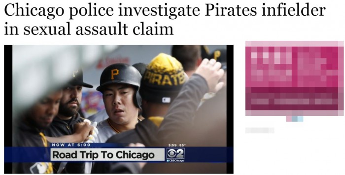 시카고 경찰은 6일 강정호를 성폭행 혐의로 조사 중이다라고 밝혔다. 현재 강정호 소환 조사 일정을 조율 중인 것으로 알려졌다.
