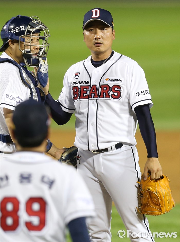 마운드 내려가는 두산 정재훈