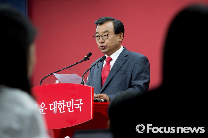 (서울=포커스뉴스) 이정현 새누리당 의원이 7일 오전 서울 여의도 새누리당사에서 오는 8월 당 대표를 선출하는 전당대회에 후보로 출마하겠다는 입장을 밝히고 있다.