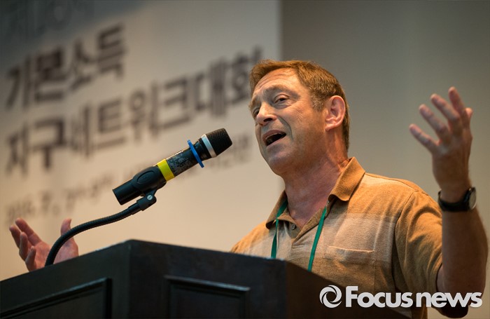(서울=포커스뉴스) 가이 스탠딩 영국 런던대학교 동양아프리카연구대학(SOAS) 교수가 7일 오전 서울 서강대학교 다산관에서 열린 제 16차 기본소득지구네트워크 대회에서 발언하고 있다. 이번 16차 대회는 아시아에서는 처음 열리는 기본소득 국제 대회로 세계 23개국에서 기본소득 운동을 벌이는 활동가와 이론가들이 참석한다.