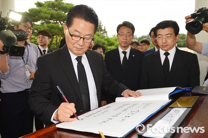 (서울=포커스뉴스) 박지원 국민의당 비상대책위원장이 7일 오전 동작구 국립서울현충원을 방문해 현충탑을 참배한 뒤 방명록을 작성하고 있다.