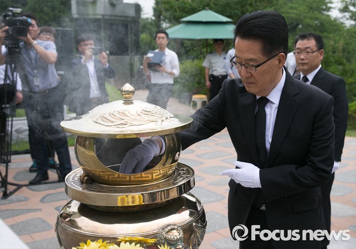 (서울=포커스뉴스) 박지원 국민의당 비상대책위원장과 비대위원 등이 7일 오전 동작구 국립서울현충원을 방문해 故 김대중 전 대통령 묘소 참배를 하고 있다.