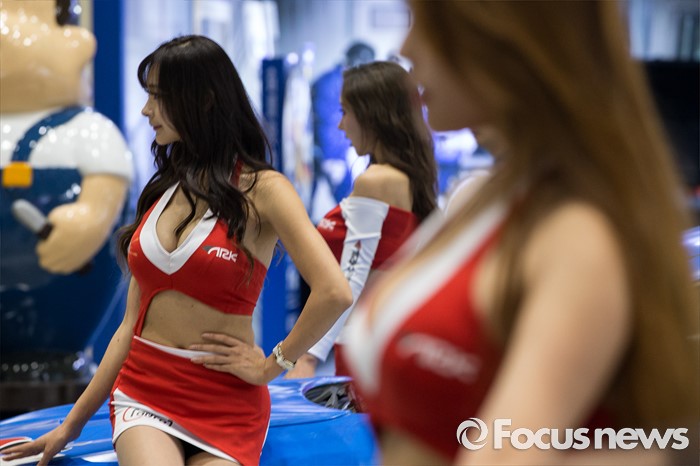 (서울=포커스뉴스) 7일 오전 서울 강남구 코엑스에서 열린 제14회 서울오토살롱에서 레이싱모델이 튜닝차량을 선보이고 있다.