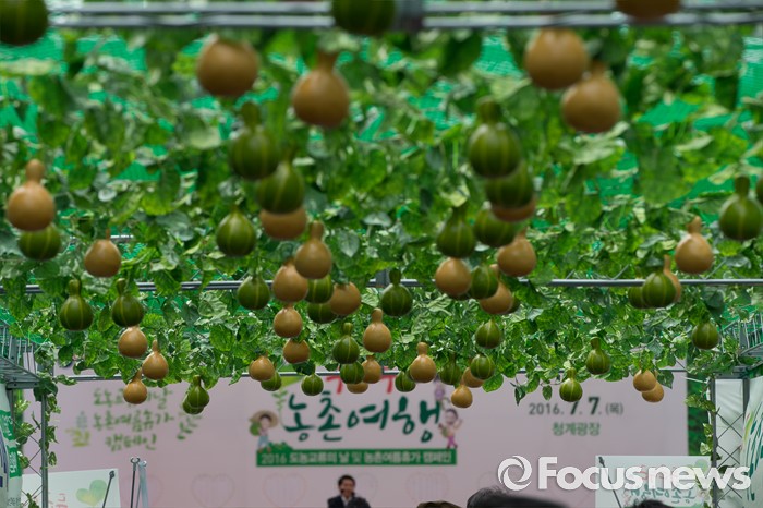 (서울=포커스뉴스) 7일 오후 서울 종로구 청계천 광장에서 이동필 농림축산식품부 장관 및 내빈들이 '2016 도시 농촌 교류의 날 및 농촌여름휴가 캠페인'에 참석하고 있다.