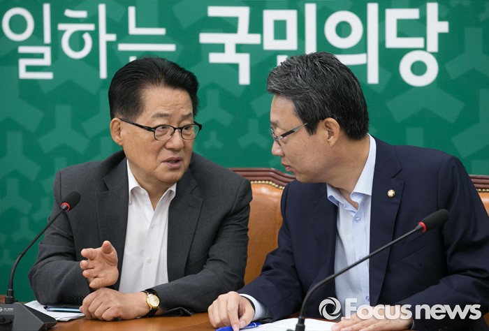 (서울=포커스뉴스) 8일 오전 서울 여의도 국회에서 열린 국민의당 원내대책회의에 참석한 박지원(왼쪽) 비대위원장과 김성식 정책위의장이 대화하고 있다.