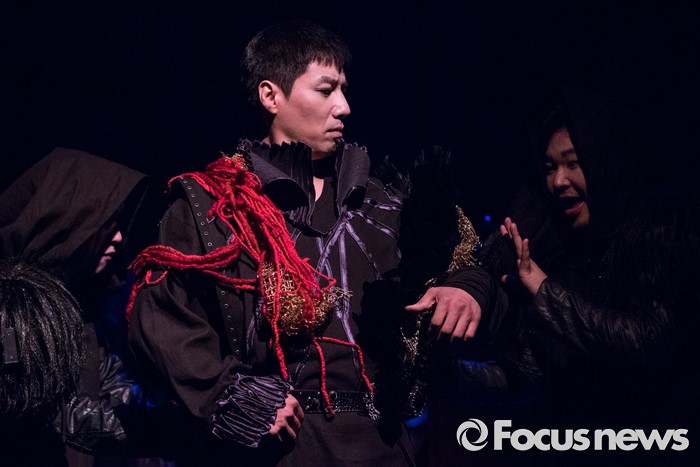 (서울=포커스뉴스) 8일 오후 서울 종로구 동숭아트센터에서 열린 오페라연극 '맥베스' 프레스콜에 참여한 배우 김재만이 주요장면을 시연하고 있다.