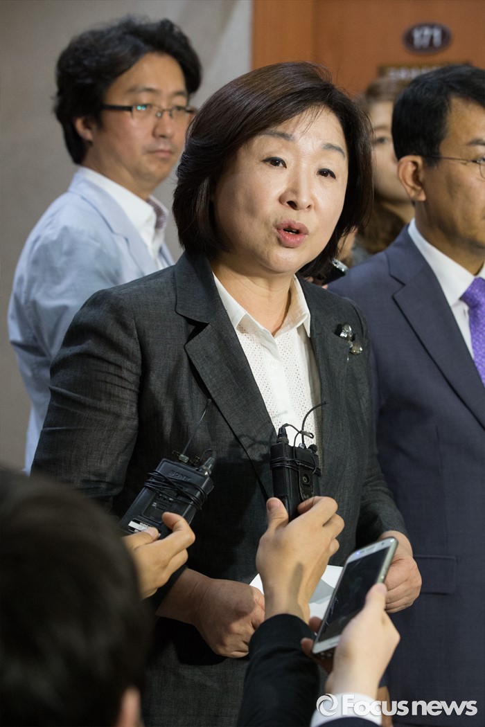 (서울=포커스뉴스) 10일 오전 서울 영등포구 국회에서 심상정 정의당 삼임대표가 사드 배치 관련 긴급기자회견을 마친 뒤 브리핑실 밖에서 취재진의 대답하고 있다.