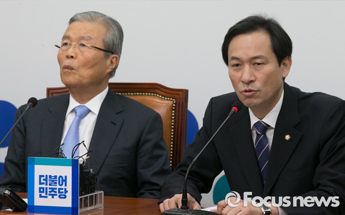 아울러 "박근혜정부는 동북아시아가 군비 확장 경쟁이 가득한 새로운 화약고가 되지 않도록 외교·안보 전략을 정리해서 균형을 잡아야 한다"고 덧붙였다.11일 오전 서울 여의도 국회에서 열린 더불어민주당 비상대책위원회의에 참석한 우상호(오른쪽) 원내대표가 발언하고 있다. 2016.07.11 박동욱 기자